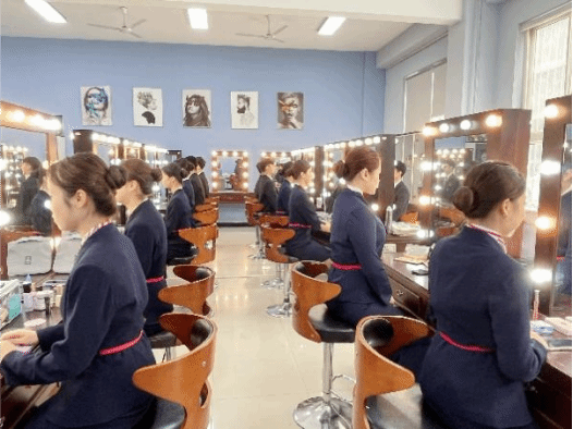 我校为空中乘务专业配备了先进的全仿真模拟客舱、个人形象设计实验室和形体训练室,满足空中乘务专业日常教学需要。